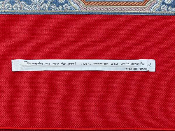 إن ما جعل هذا الاجتماع مميزًا حقًا لم يكن التواصل المثمر فحسب، بل أيضًا اللفتة الصادقة من العميل. بعد المناقشة، ترك لنا العميل ملاحظة مكتوبة بخط اليد - مكتوبة بشكل غير متوقع على الغلاف الورقي للقش. نص الرسالة: ' كان هذا الاجتماع أكثر من رائع! أنا أقدر حقًا ما فعلته من أجلنا! شكرًا لك'