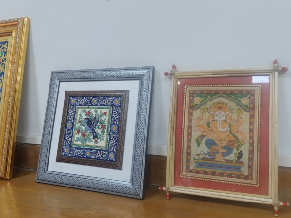 تُعرض هذه الهدايا بفخر في مكتبنا، وتشكل معرضًا ثقافيًا نابضًا بالحياة. ومن بينها لوحات زخرفية وأعمال فنية متقنة الصنع تعكس تأثيرات قوية من تقاليد الفن الإسلامي. تشير الأنماط الهندسية المعقدة والزخارف الزهرية والعناصر الخطية إلى أصول من مناطق مثل آسيا الوسطى والشرق الأوسط. تتميز إحدى اللوحات المذهلة بتصميمات زخرفية تفصيلية مرتبطة عادة بأوزبكستان، المعروفة بتاريخها الغني على طول طريق الحرير. يبدو أن هناك عملاً فنياً آخر في إطار يدمج لغة التصميم الإسلامية التقليدية - التناسق والدقة والشعور العميق بالانسجام.